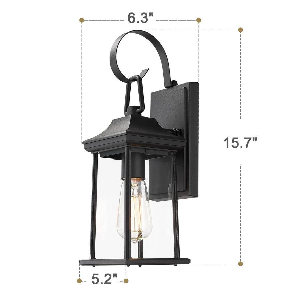 This outdoor wall light is a go-to choice when incorporating classic silhouettes with a farmhouse flair into your home decor vision. The traditional frame is constructed with metal, corrosion-resistant housing and coated in a classic black finish. A beautiful transparent shade adds charming character to the timeless design. It can be mounted on fence posts in your front or backyard, driveway, porch, balcony, or walkway. They brighten patio, deck, terrace, and pool areas with one E26 bulb light (bulb not included) that safely secures areas around your home.