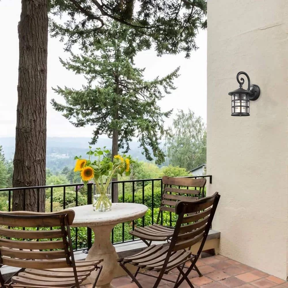 This outdoor wall lamp has a simple and stylish look with sturdy metal and aluminum construction. Clear glass kernels with black finishes, light can shine through the transparent glass cover with warm rays that illuminate your house. It is waterproof and weather-resistant can be placed in wet places and in direct contact with water. Good for porches, gardens, and garages.