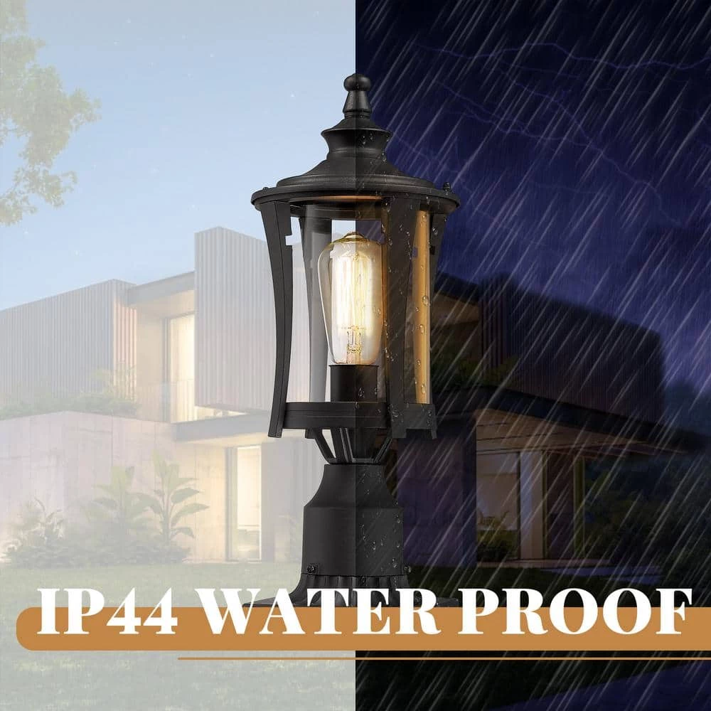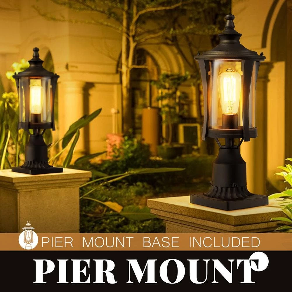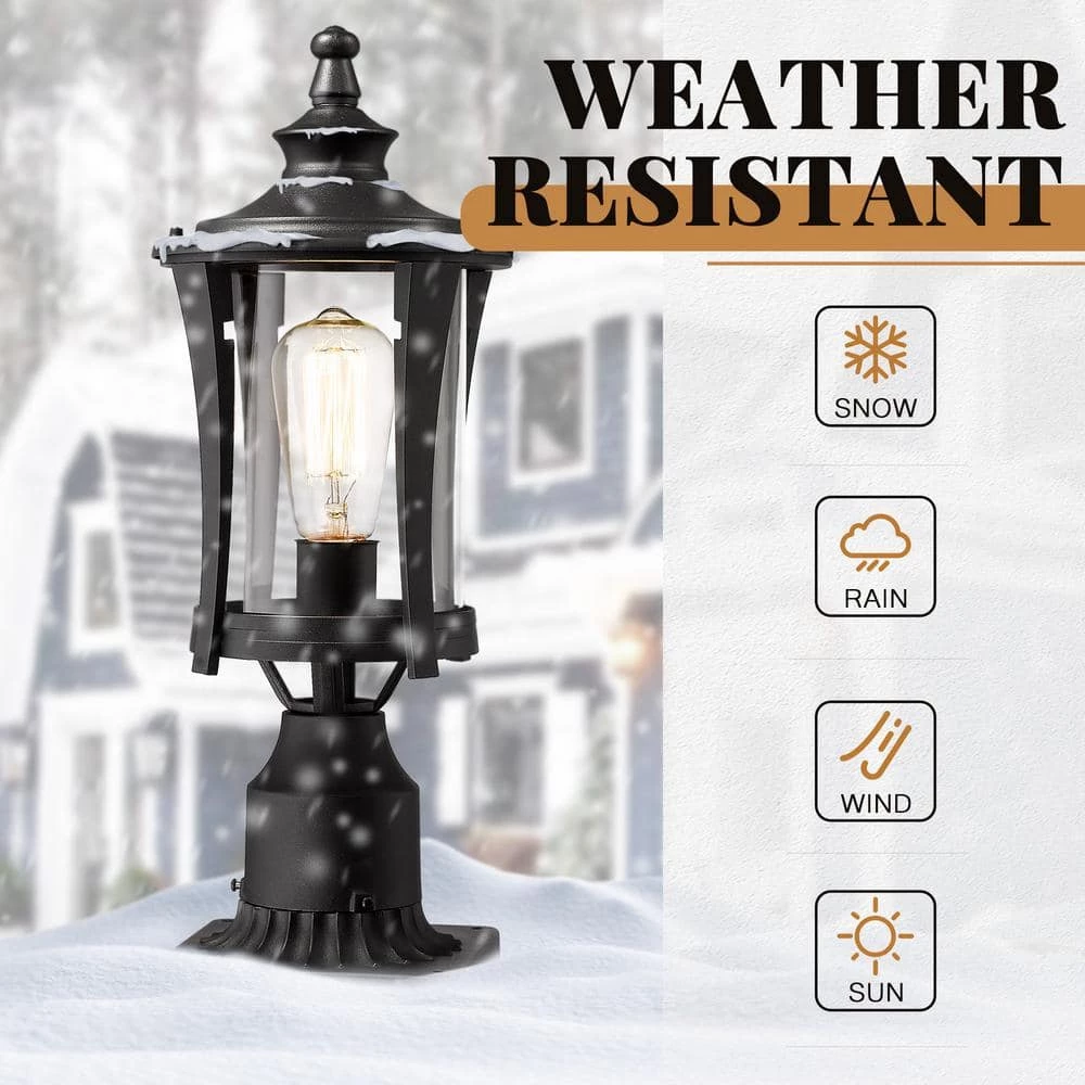This outdoor post Lantern is made of sturdy construction in a matte black finish, clear glass shade, ideal for patio, garden, porch, garage, walkways and driveways. It is completely weather-resistant for any outdoor environment. made from metal with a weather-resistant finish, this simple design features a strong base. Clear Glass complete the aesthetic as they temper the glow of a single bulb. (Bulb not included).