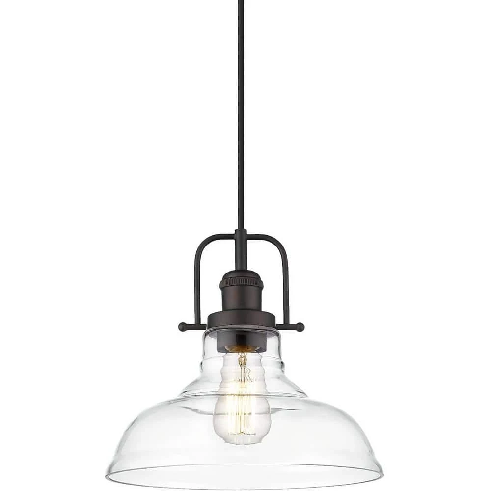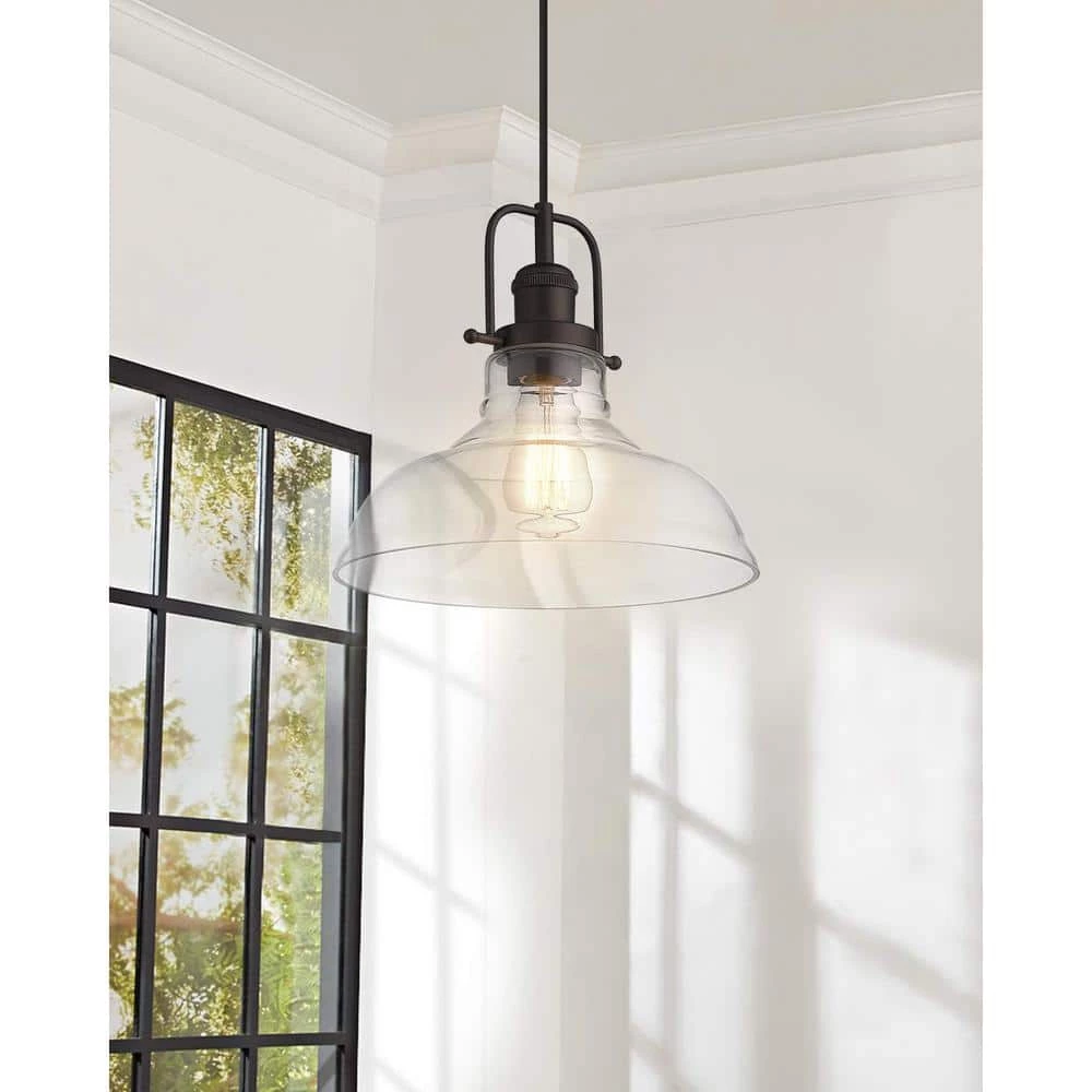 Clear handblown glass dome shade with oil rubbed bronze finish pendant light keeps the space feeling light and airy for a fresh look. This farmhouse pendant light is perfect for kitchen islands, porch Lighting, hallways, bars, dining room, living rooms, cafes, clubs, Foyers, Barns, among many indoor applications. Dimension: 11 in. L x 11 in. W x Max 98.5 in. H. Ceiling Canopy: Dia. 4.85 in. Cords are included for height adjustment. Allowing you to customize the fixture to your lighting needs and desired look.