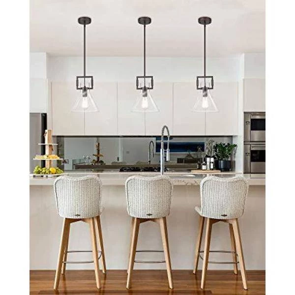 This pendant light works with industrial, modern, and transitional design. Comes in an oil-rubbed bronze finish and clear globe glass shade. A rustic hanging light fixture perfect for the Kitchen Island, Dining room, Living Room, Corridor, Bathroom, Cafe, Basement, Farmhouse, Barn, Warehouse, Restaurant, Bedroom, and so on.