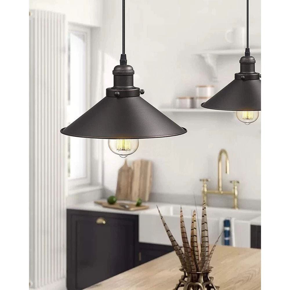 MODERN and VINTAGE DESIGN: Featuring classic style industrial shade, these farmhouse hanging pendant lights are made of sturdy metal construction in oil rubbed bronze finish. We love how its vintage-inspired design and smooth silhouette make this light blend with decor aesthetics from modern industrial to coastal. Install this hard-wired light by itself or pair it with a few others for an eye-catching display.