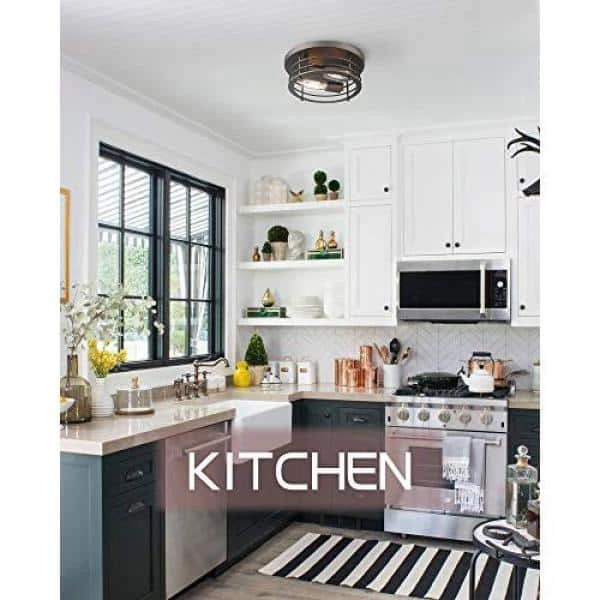 - Rustic close to ceiling light fixture perfect for the kitchen, laundry, hallway, foyer, dining room, living room, bedroom, entryway, stairway, farmhouse, barn, basement, and more