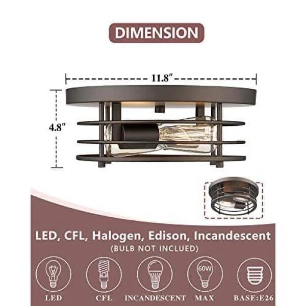 This round ceiling light fixture with updated industrial design comes in a Oil-Rubbed Bronze Finish. Farmhouse style metal cage shape. 2-light features an antiqued look that elevates your home with a beautiful rustic feeling.