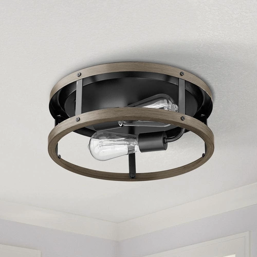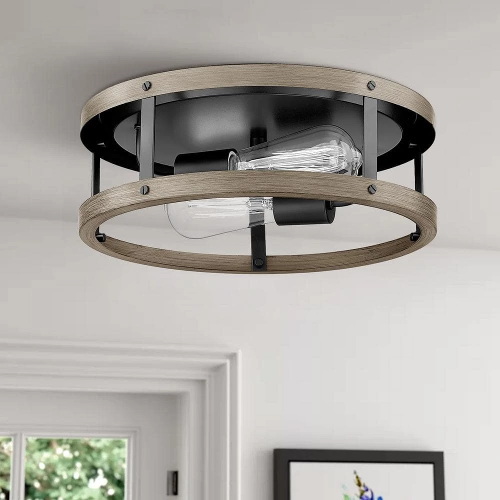 - Finish mixes with classic metal accents to create a picturesque flush mount that adds a rustic element to any space