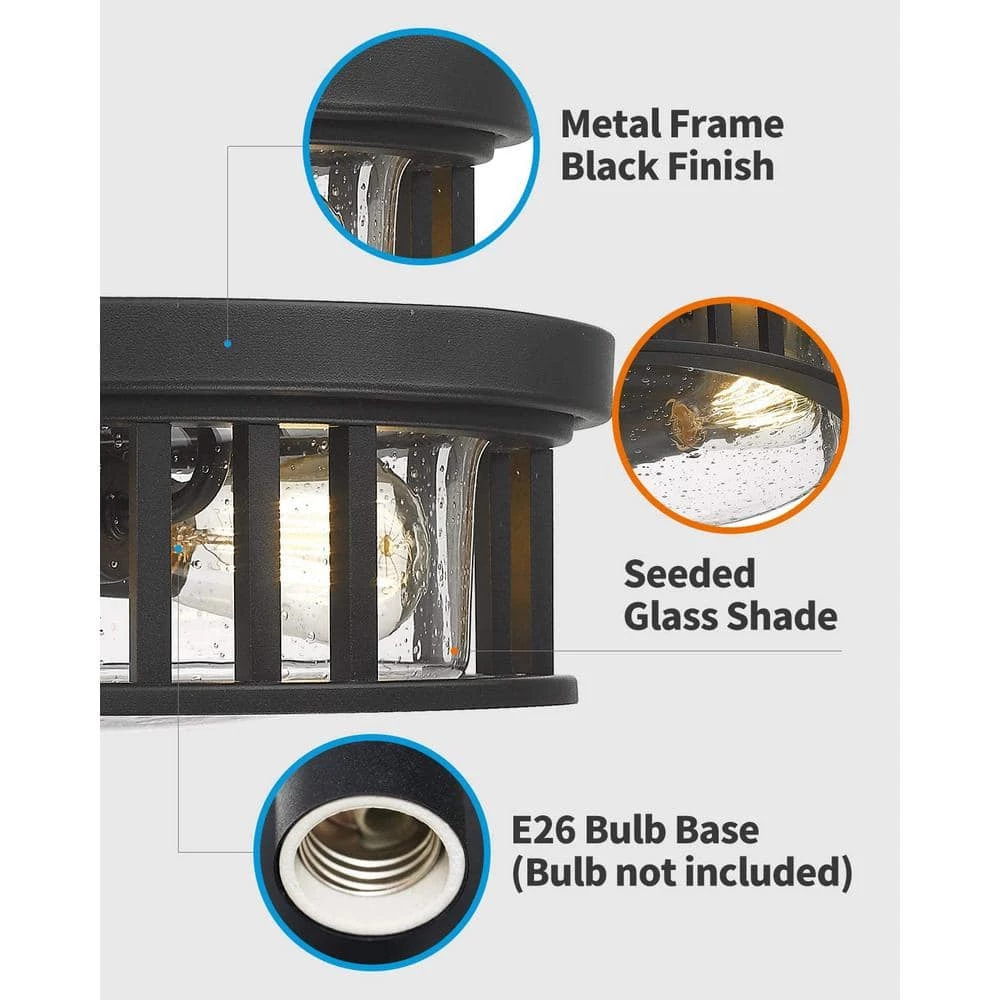 This cage ceiling light features a metal frame in a black finish, with a seeded glass lamp shade, beautiful and durable. It is time to breathe new life into the mundane every day with a refreshed lighting design. Make your purchase today to begin your journey to a whole new lighting experience.