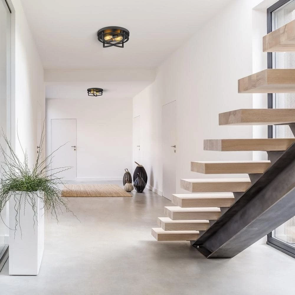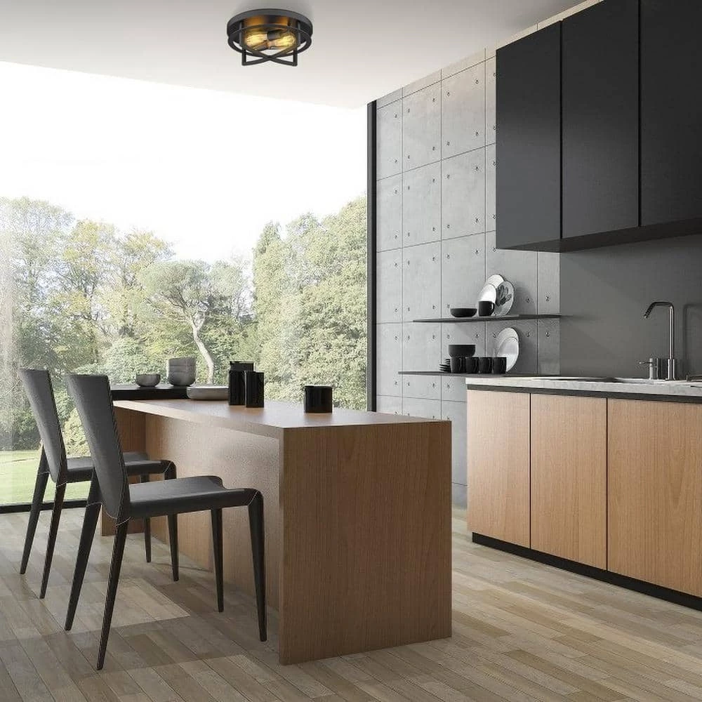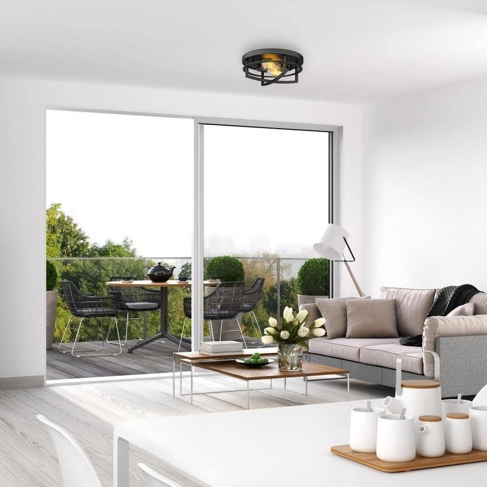 This 2-light semi-flush mount has a low-profile design that’s great for smaller areas and homes with low ceilings. It features a metal canopy, and its open cage surrounds two 60-Watt bulbs (bulbs not included). We love how its dark finish and understated silhouette make this light blend with modern and industrial decor styles. Plus, it works with LED bulbs for an eco-friendly upgrade, and it’s compatible with a dimmer switch, letting you set the mood exactly how you want it.