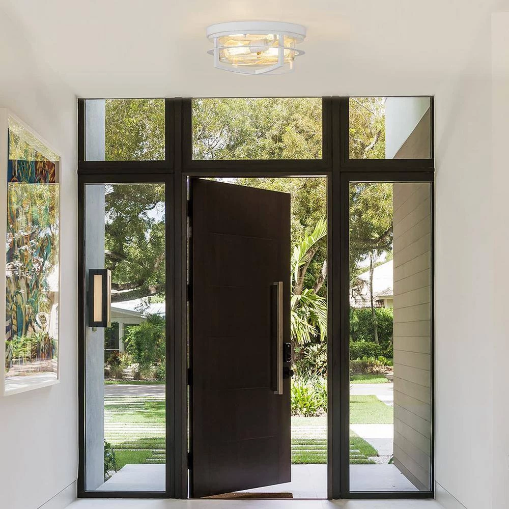 This farmhouse flush mount is ideal for hallway, entryway, kitchen, bedroom, bathroom, dining room, living room, corridor, foyer, storage room, restaurant, cafe, and bar. Featuring a modern design, this flush mount ceiling light is made of a metal frame with seeded glass shade in a black finish, creating a chic and farmhouse look in your house. Hard wired. This hallway ceiling light includes all mounting hardware for quick and easy installation. ETL is Listed for your safety. Requires a 2 x E26 base 60-Watt bulb (incandescent, LED, or CFL). Bulb not included. Easy installation and easy to clean.