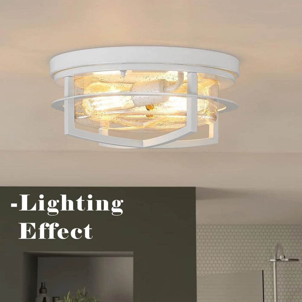 - Featuring modern design, this flush mount ceiling light is made of a metal frame with seeded glass shade in white finish, creating a chic and farmhouse look in your house