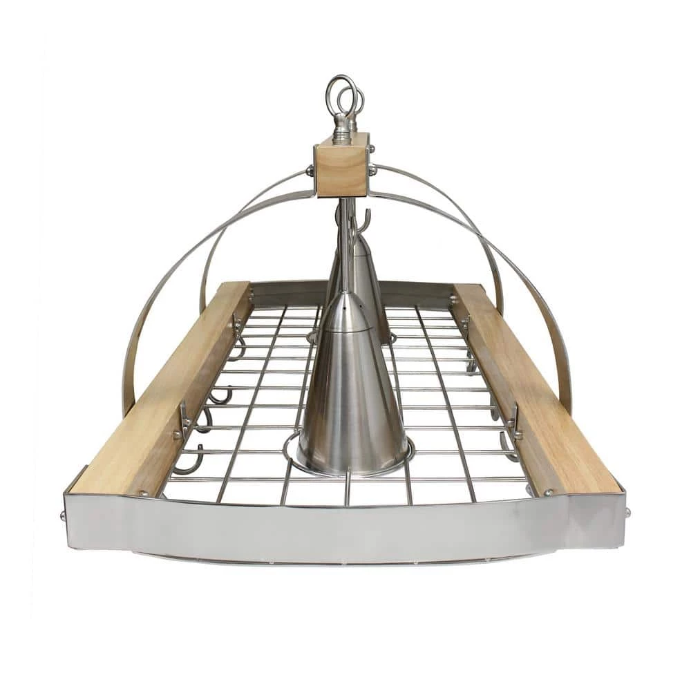 Add cozy storage to your kitchen with this country kitchen look 2-light pot rack fixture. Enjoy easy access to pots and utensils, as well as extra lighting for your everyday tasks. The 16 hooks allow you to store and organize a variety of kitchenware. The wooden finish adds rustic charm and blends beautifully with rustic, farmhouse and cottage decor.