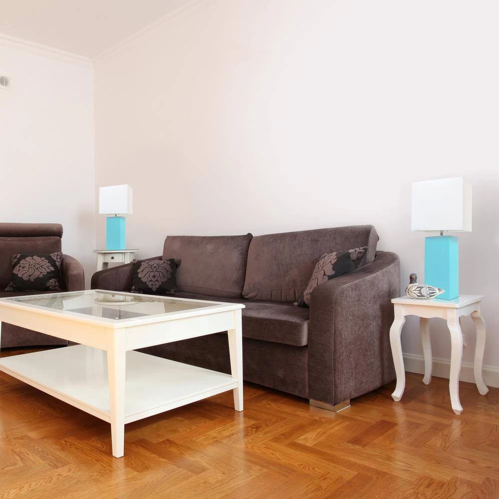 21 in. Modern Aqua Leather Table Lamps with White Fabric Shades (2-Pack) by Elegant Designs