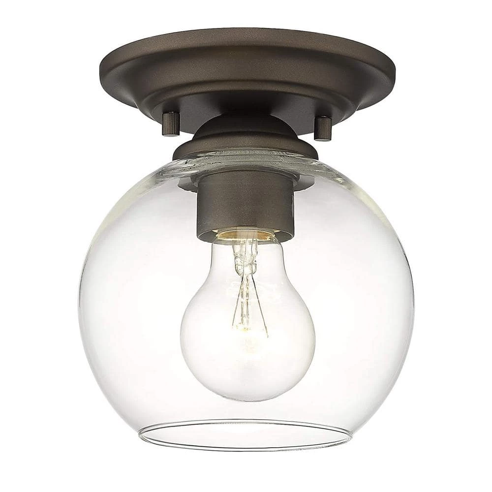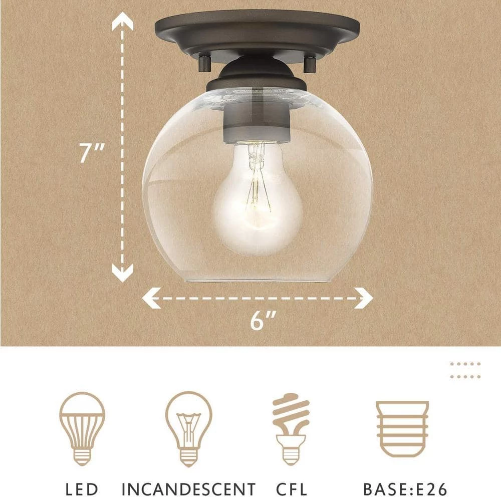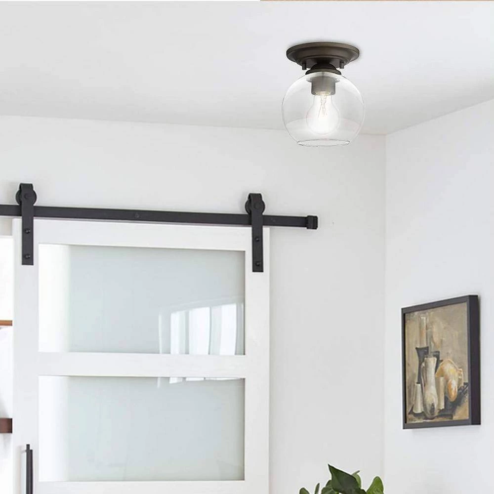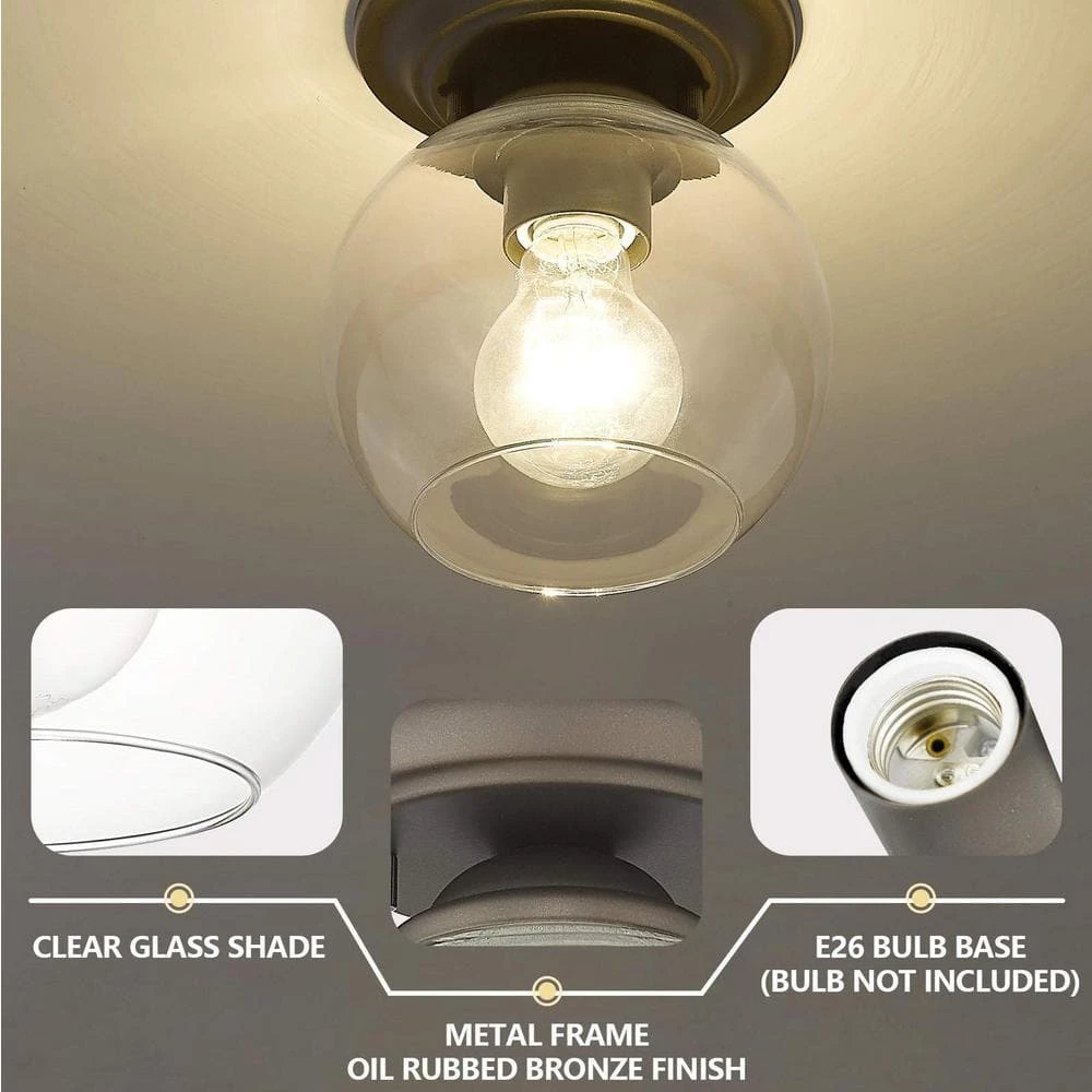 This semi flush mount features a unique clear glass lampshade and vintage style oil rubbed bronze metal base to create the atmosphere and effect you want. Designed with simple and smooth lines, the flush mount ceiling light is extremely eye-catching and will let you fall in love with it at the first glance. All-round obstructed emission of charming lights, decorate your room well.