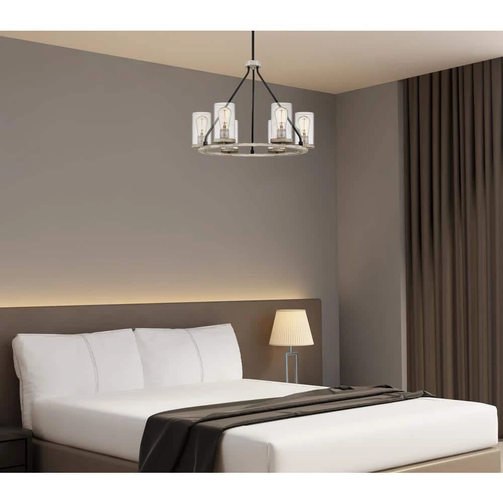 The Modern 6-Light Chandelier Pendant Ceiling Light Hand Painted Wood Clear Glass Shade Adjustable Height for Hallway, Entryway, Passway, Dining Room, Bedroom, Kitchen Island, Living Room. It is time to breathe new life into the mundane every day with a refreshed lighting design. Make your purchase today to begin your journey to a whole new lighting experience.