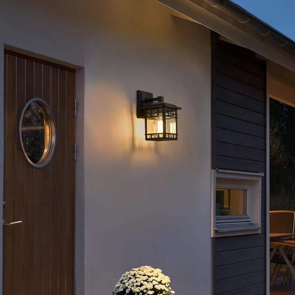 Finished in a classic black that pairs well with any outdoor setting, this wall light adds a dash of style to your landscape while providing energy-efficient lighting. This fixture is perfect for creating ambiance by illuminating walkways, gardens, patios, decks, porches or other outdoor spaces. It can be used for many-years without being rust or corrosion. This hard and durable wall Lamp is very suitable for outdoor and extreme weather, such as heavy rain/freeze/blizzard.