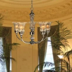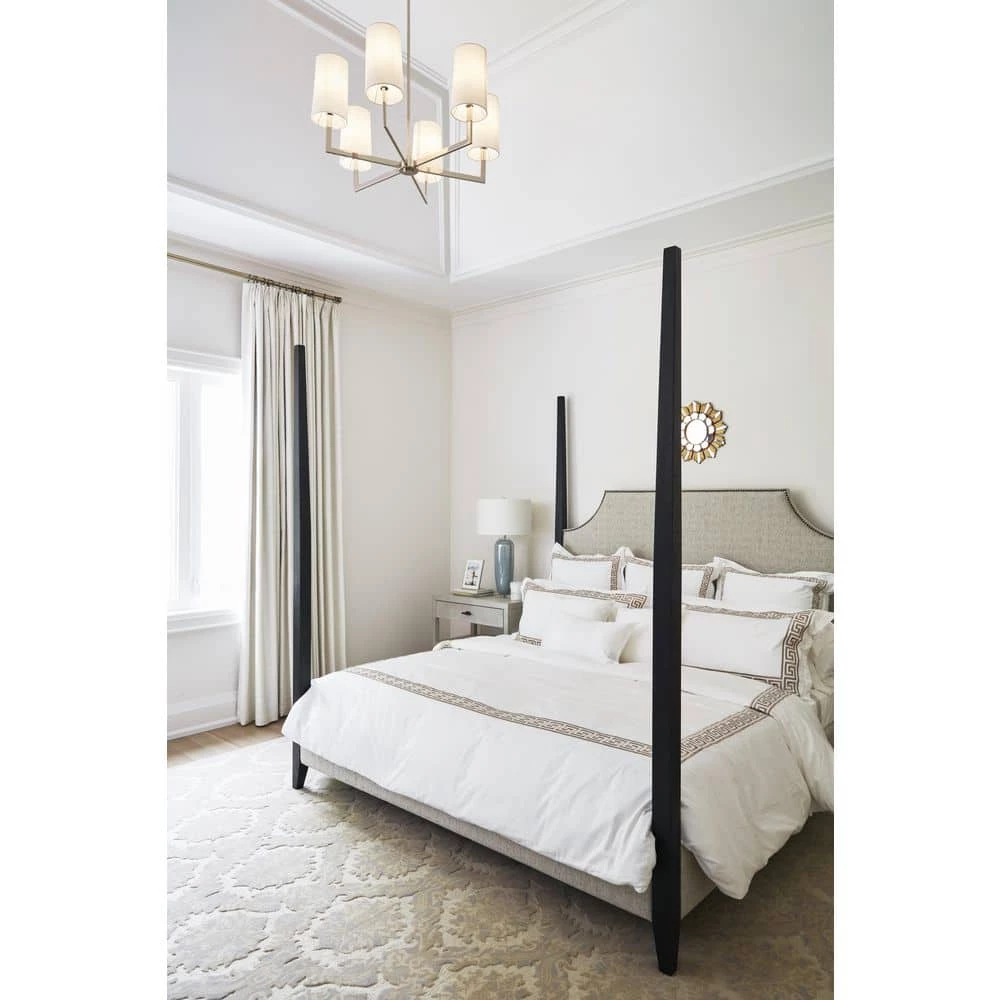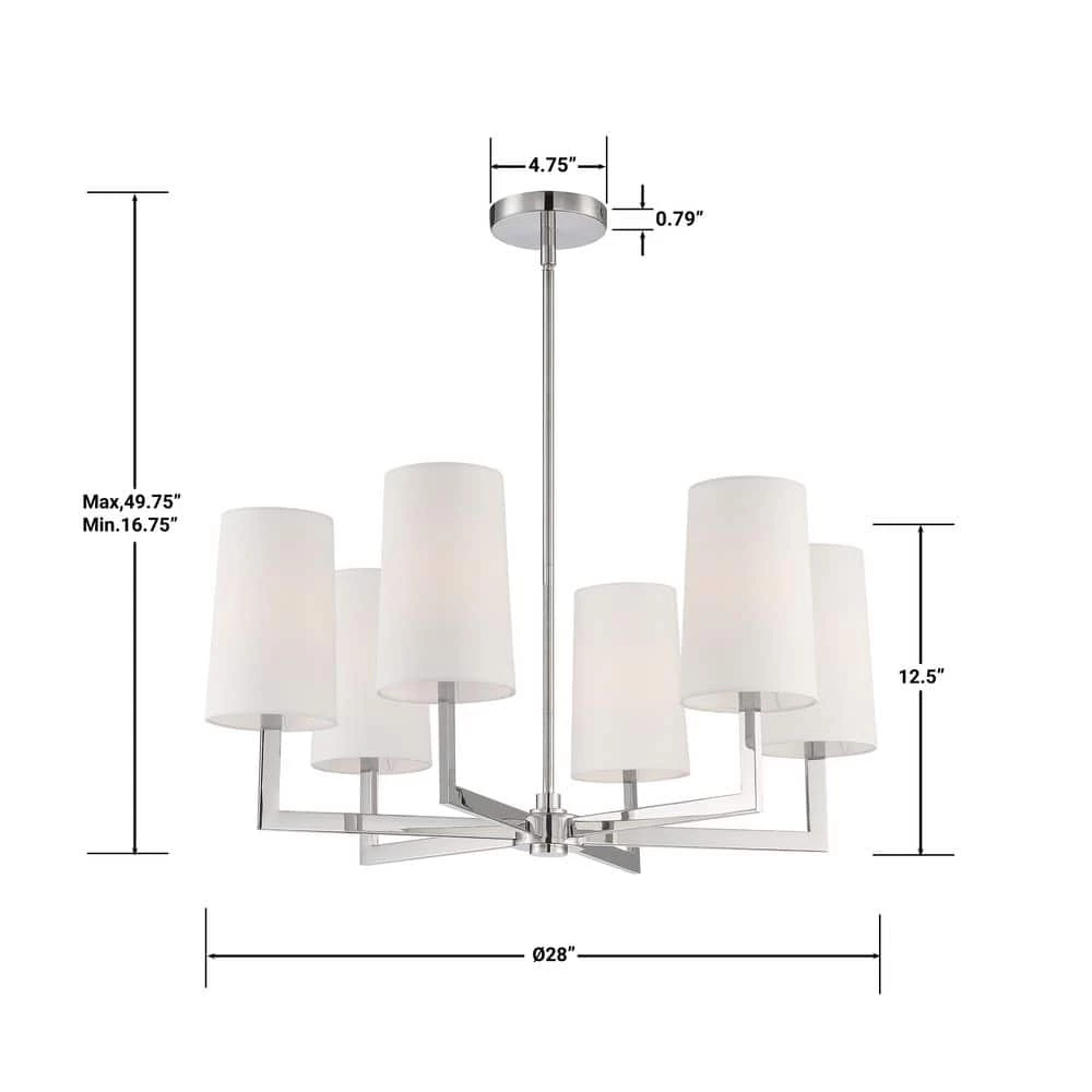 The Dorset 6 Light Chandelier is available in a polished nickel finish. The white linen shade compliments the overall look making it a perfect fit for any modern room setting. This chandelier is an exquisite example of a modern fixture with a fresh design.