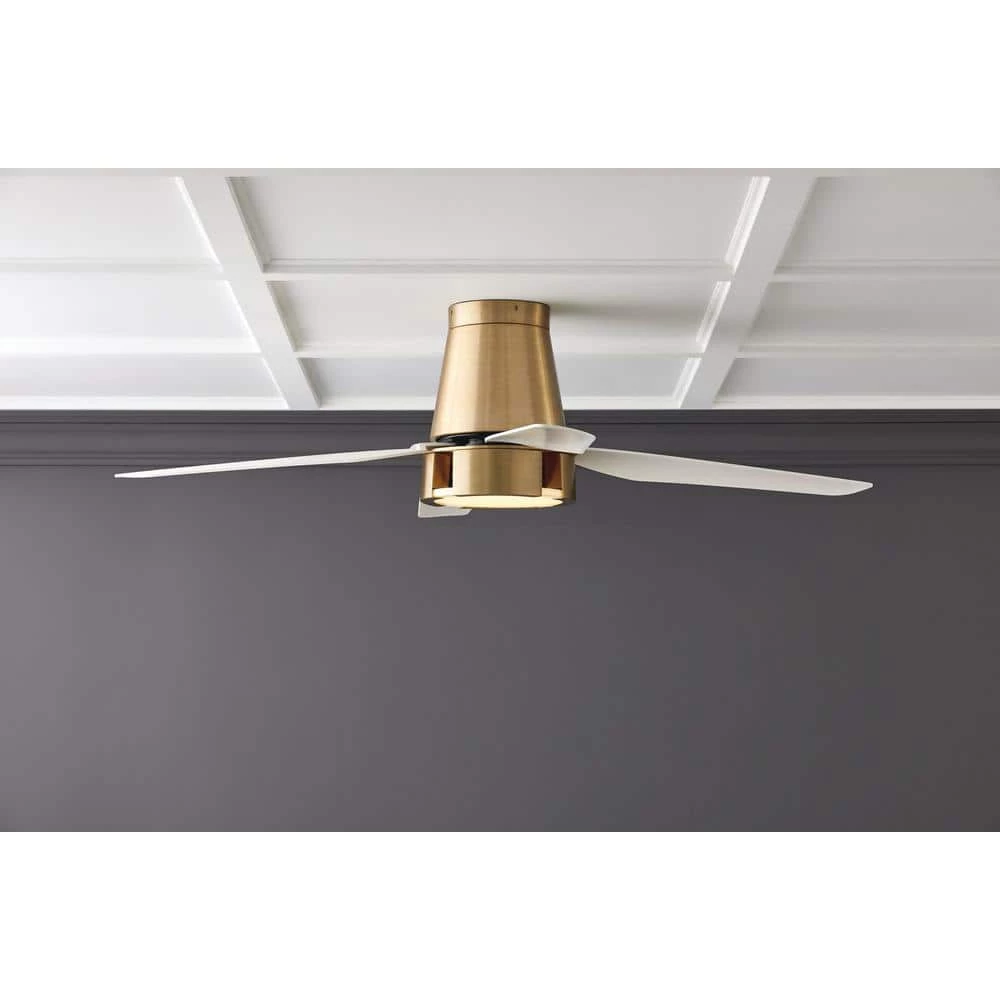 The Hugh ceiling fan has LED lighting controllable via the included remote control. This fan comes in a very sheek and modern brushed brass finish. The Hugh would compliment any room in your house.