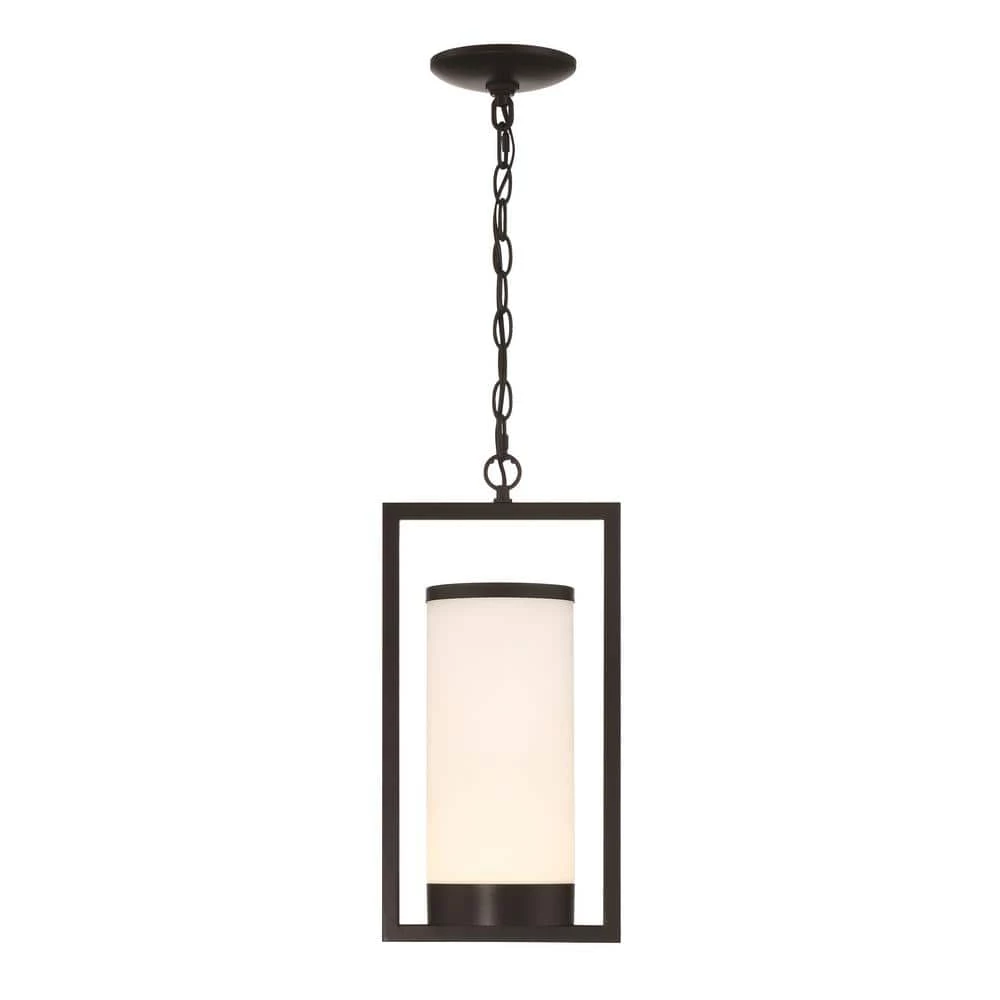 A statement piece with a modern point of view. The Landon outdoor lighting collection from GlucksteinElements pairs a round opal glass shade with a sleek rectangular metal frame for graphic contrast. Available in pendant, sconce, and flush mount styles, this sculptural design features integrated LED bulbs for long-lasting, high efficiency lighting.
