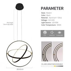 - Black metal finish with frosted glass