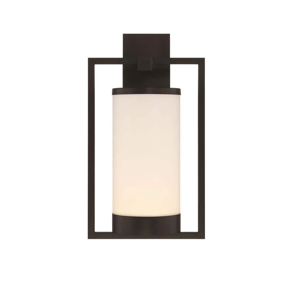 A statement piece with a modern point of view, the Landon outdoor lighting collection from GlucksteinElements pairs a round opal glass shade with a sleek rectangular metal frame for graphic contrast. Available in pendant, sconce, and flush mount styles. This sculptural design features integrated LED bulbs for long-lasting, high efficiency lighting.