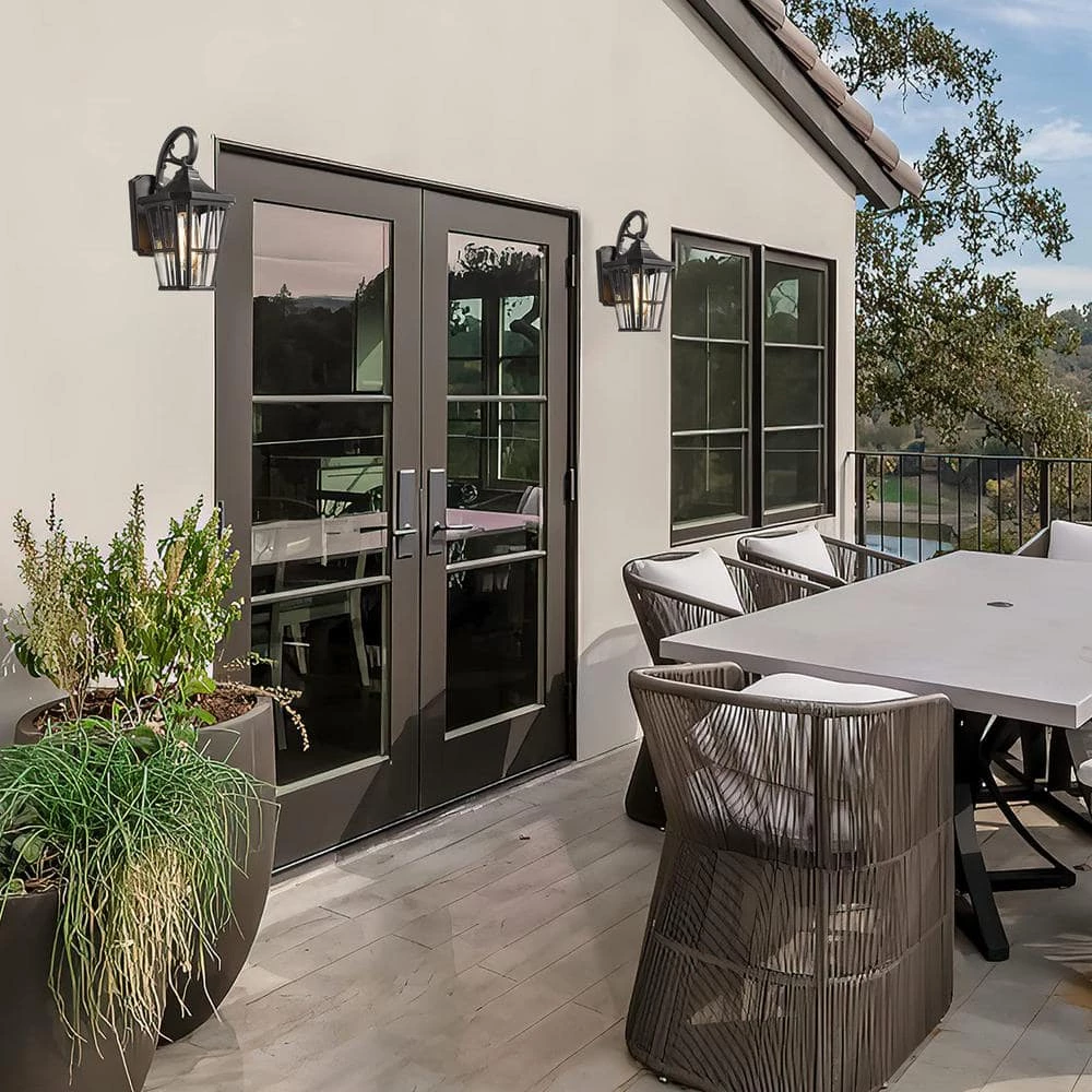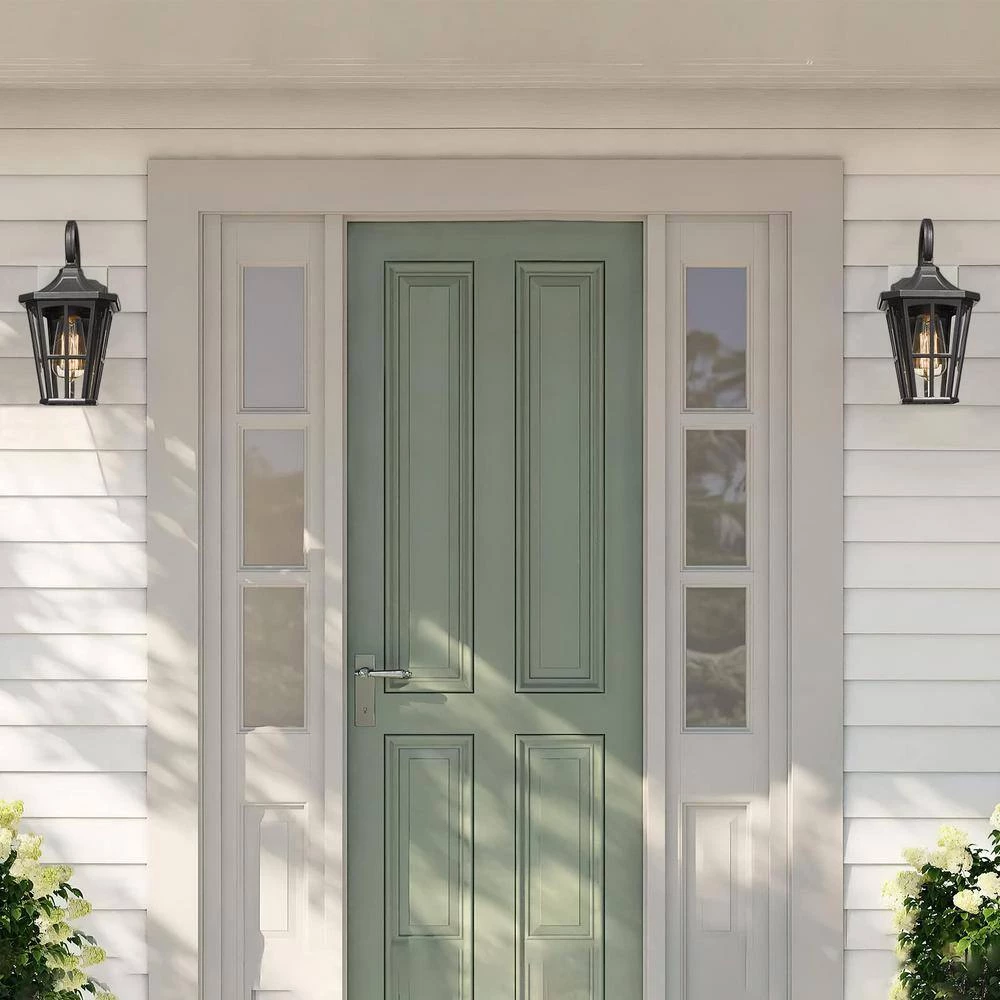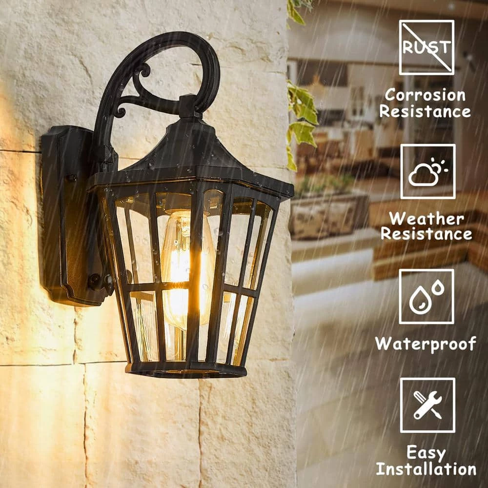 Weather-resistant and suitable for wet locations, this outdoor lantern wall light features sturdy metal construction and a clear glass shade in a black finish. This wall lantern is the best compliment for any home decor, ideal for both indoor and outdoor lighting decoration. Just install the exterior wall lamp in any place to decorate your house.