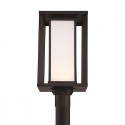 Paxton Black Integrated LED Outdoor Post with White Panel Glass Shade by GLUCKSTEINELEMENTS